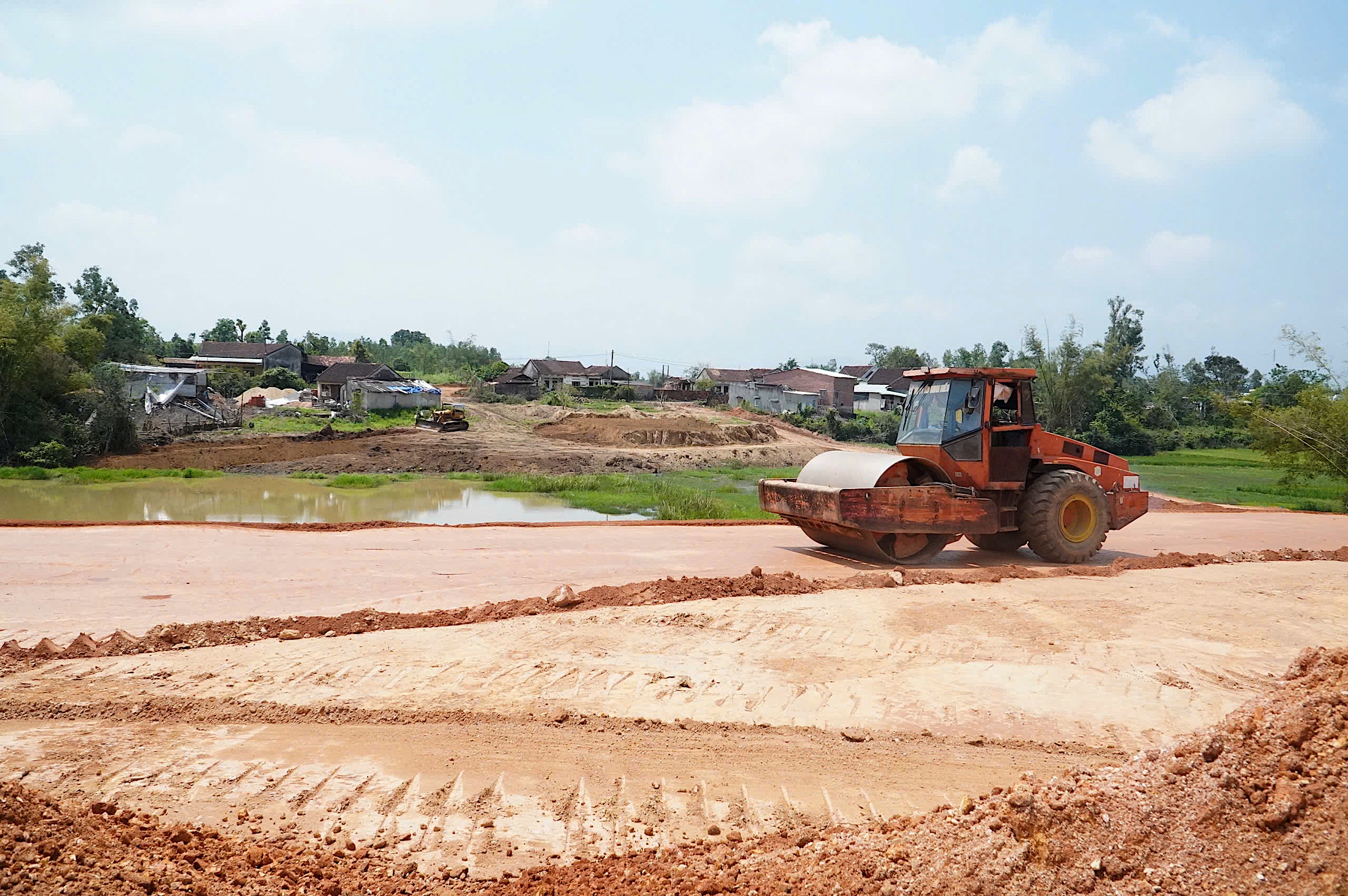 Ghi nhận tại gói thầu số 1, không khí thi công đang diễn ra khẩn trương. Nhà thầu Minh Hiếu đã huy động khoảng 200 công nhân, kỹ sư cùng hơn 310 máy móc thiết bị để triển khai các hạng mục đắp nền, lu lèn tại nút giao đầu tuyến với quốc lộ 19B, khu vực gần sân bay Phù Cát.